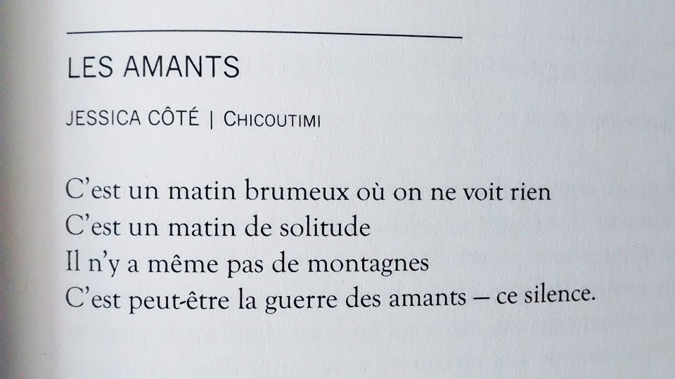 (Texte de 4 lignes), Les amants, publication à la 44e édition des concours annuels de création littéraire de La Bonante, p.43, 2015.